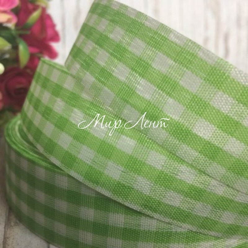 - Модель: Лента тканевая, клетка, 2,5 см, светло-зеленая