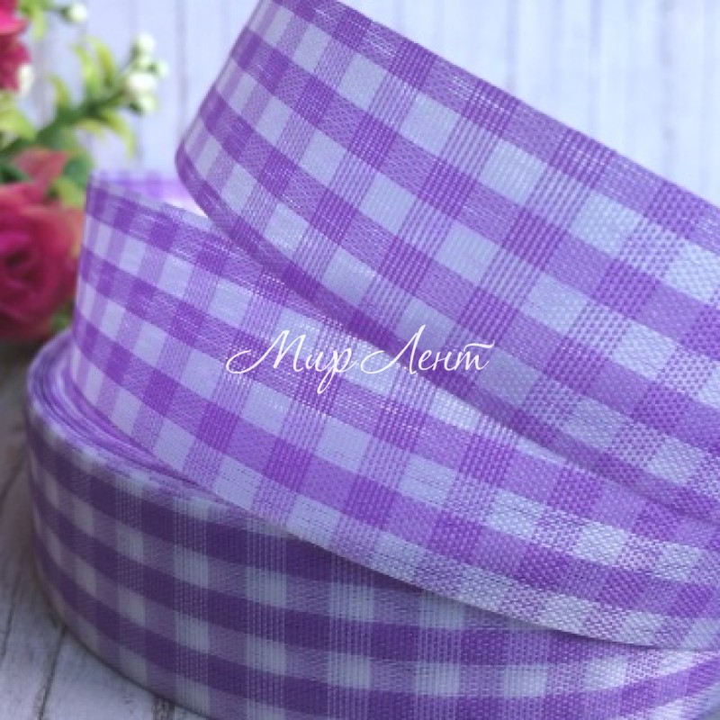 Лента тканевая, клетка, 2,5 см, лиловая