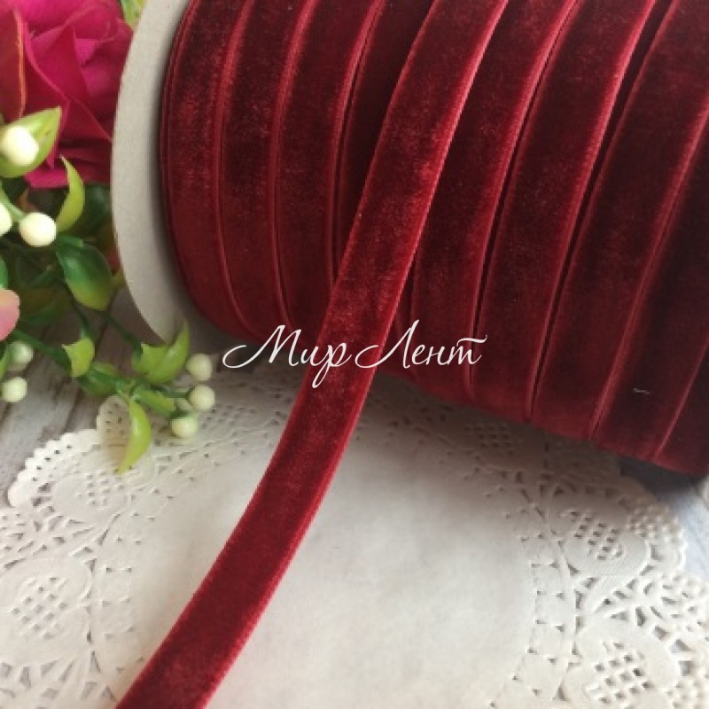 Стрічка велюр, 1 см, бургунді, метр