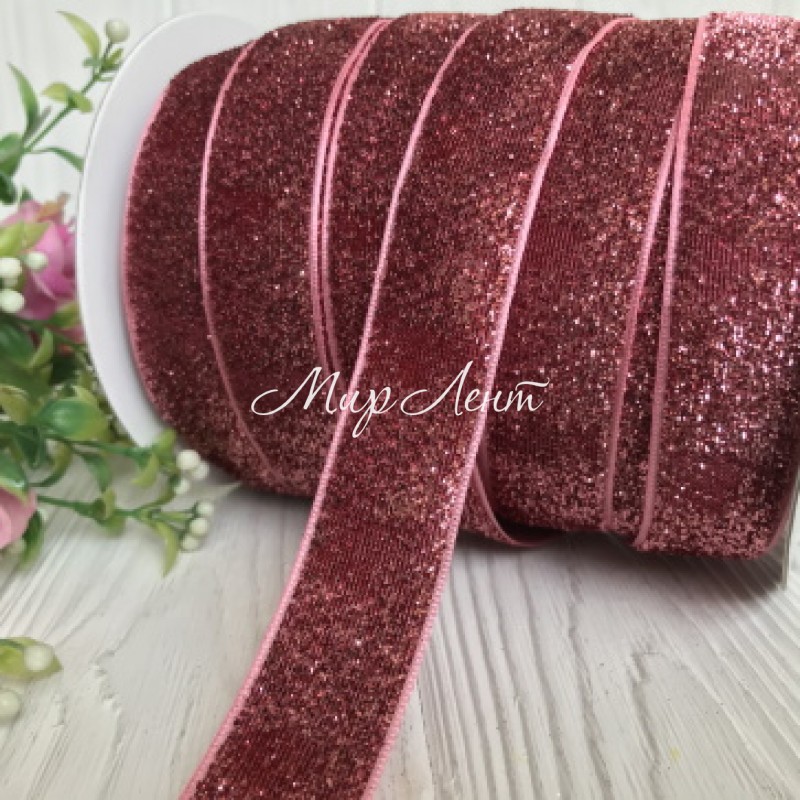 Стрічка велюр з люрексом, 2,5 см, пюсовий, метр
