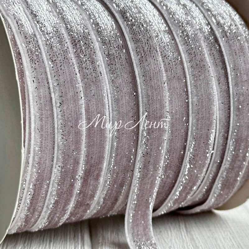 Стрічка велюр з перламутром, 1 cм, сіро-рожевий, метр