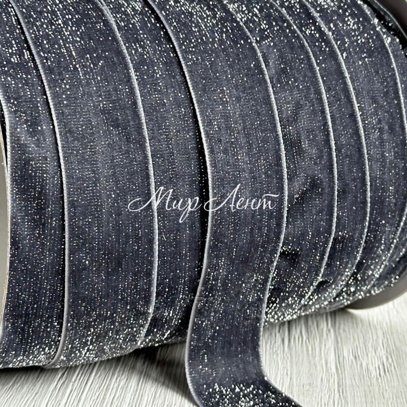 Стрічка велюр з перламутром, 2,5 cм, графітовий, метр
