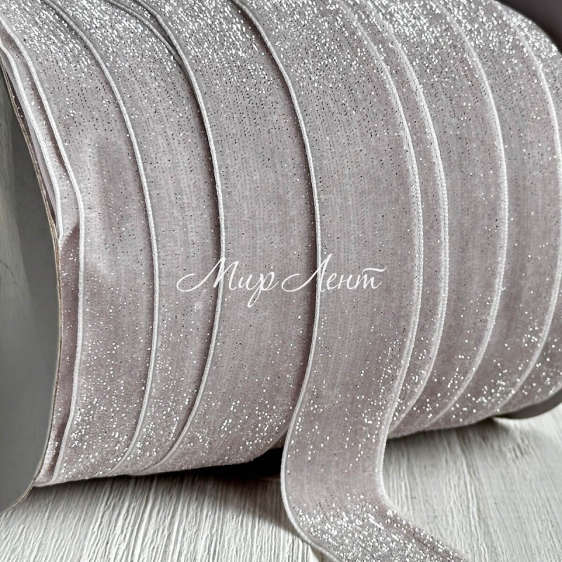 Стрічка велюр з перламутром, 2,5 cм, сіро-рожевий, метр