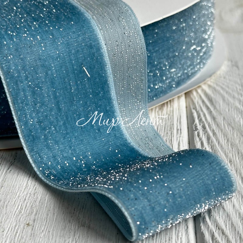 Стрічка велюр з перламутром, 4 cм, бірюзовий, метр
