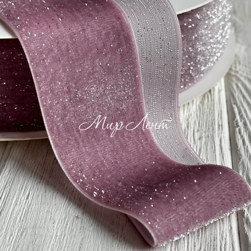 Стрічка велюр з перламутром, 2,5 cм, графітовий, метр