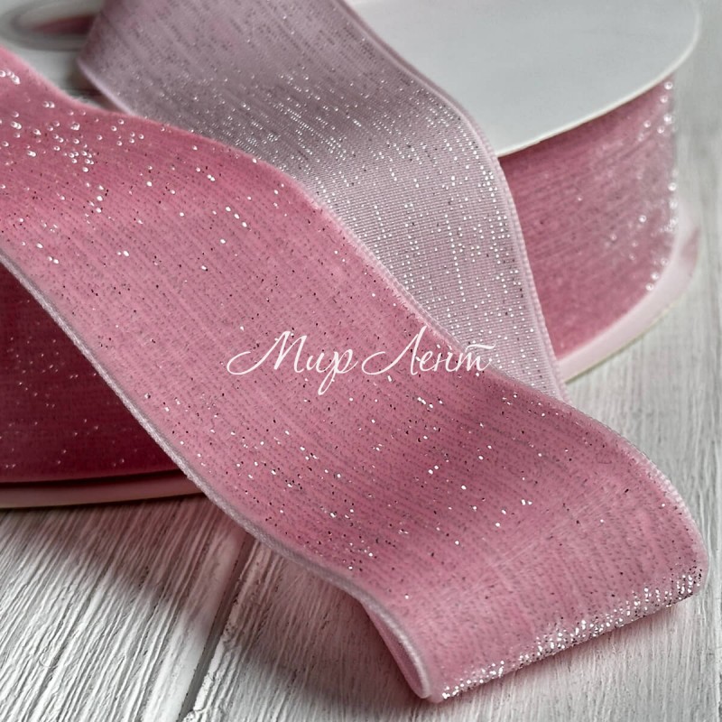 Стрічка велюр з перламутром, 4 cм, рожевий, рулон 45 м
