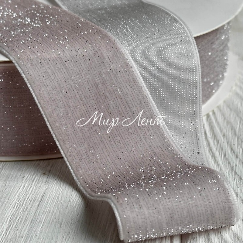 Стрічка велюр з перламутром, 4 cм, сіро-рожевий, метр