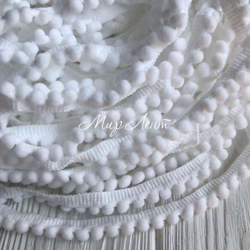Тесьма помпончики, 0,5 см, білий, метр