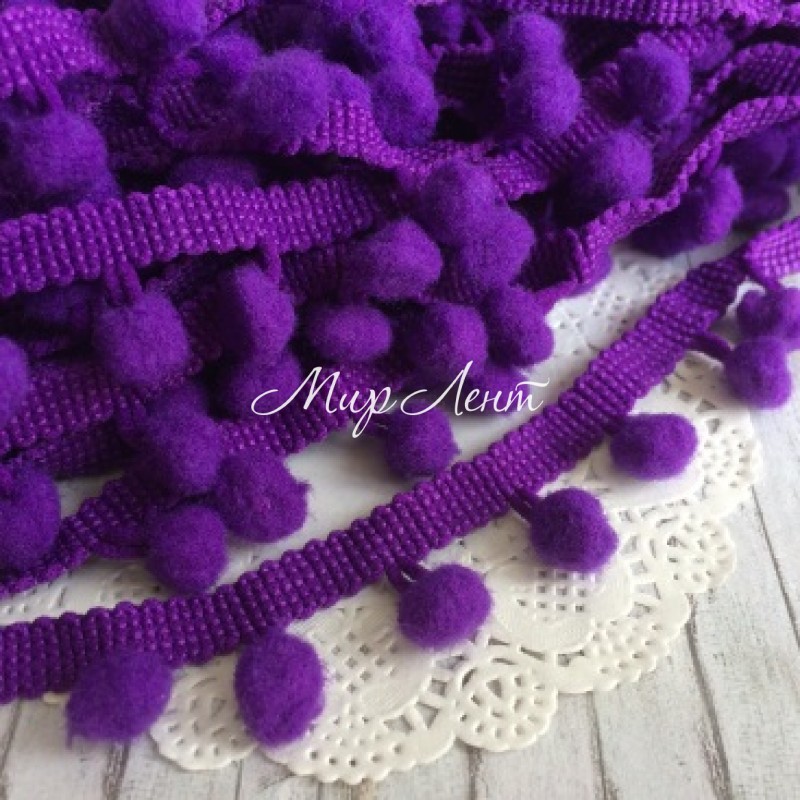 Тесьма помпончики, 1 мм, темно-фіолетовий, за 1 м