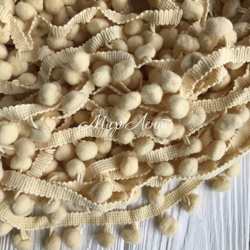 Тесьма помпончики, 1,3 см, кремово-жовтий, метр