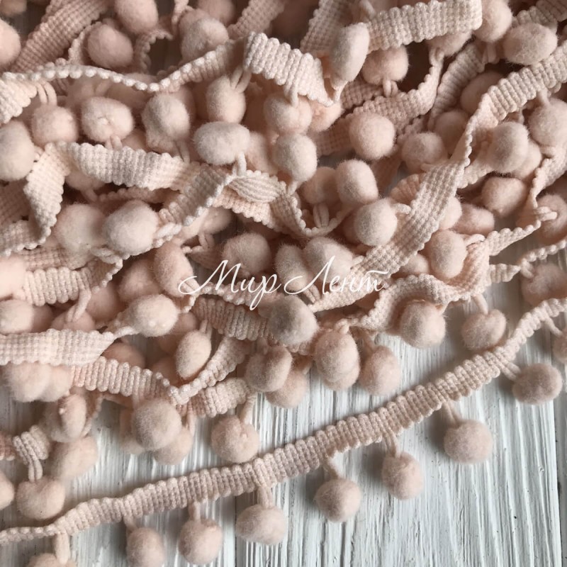 Тесьма помпончики, 1,3 см, ніжно-персиковий, метр