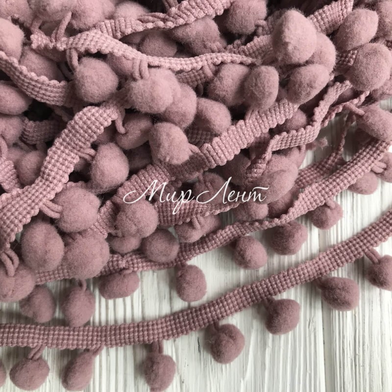 Тесьма помпончики, 1,3 см, сливово-пудровий, метр