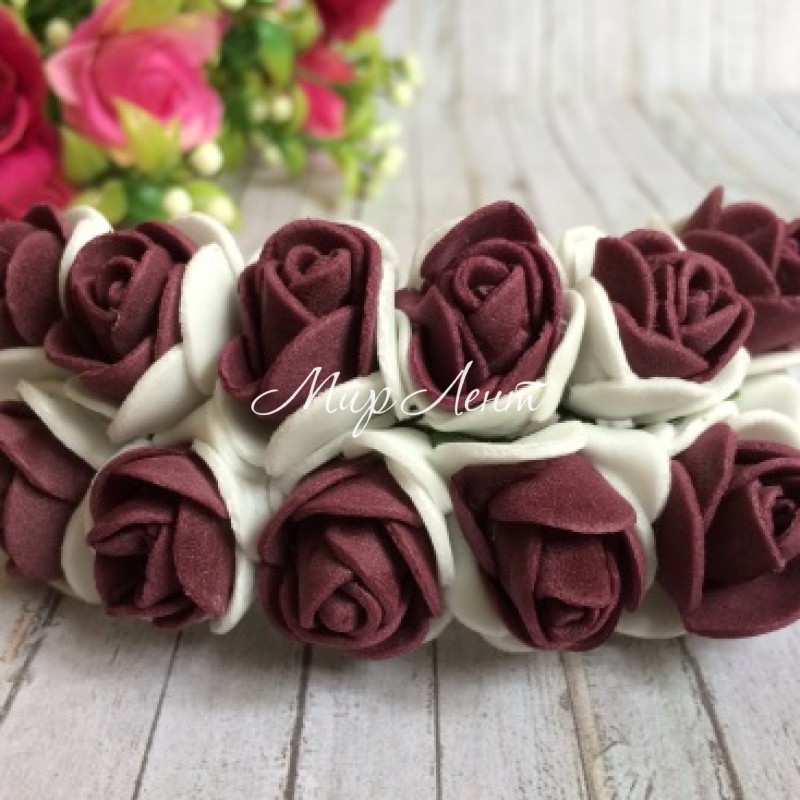 Троянда 2,2 см, біло-сливова, 12 квіточок у пучку