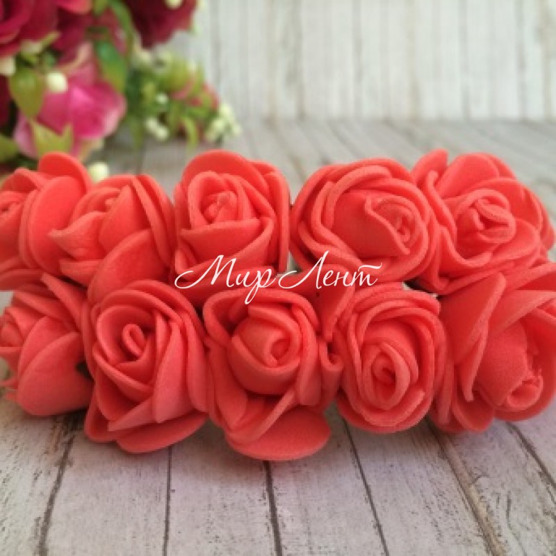 Органза півонія, 4 см, кораловий