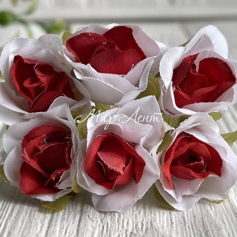Троянда тканинна, 2 см, біло-коралова, пучок