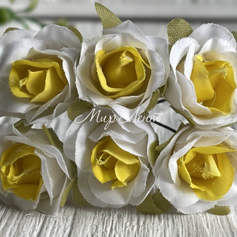 Троянда тканинна, 2 см, біло-жовтий, пучок