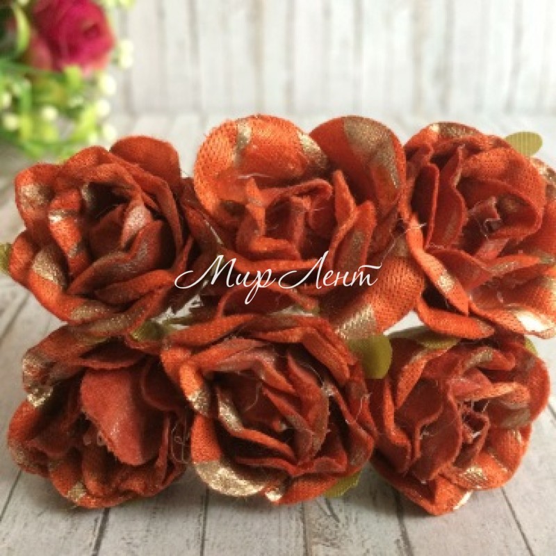 - Модель: Роза тканевая с блеском, 2,5 см, кирпичный с золотом