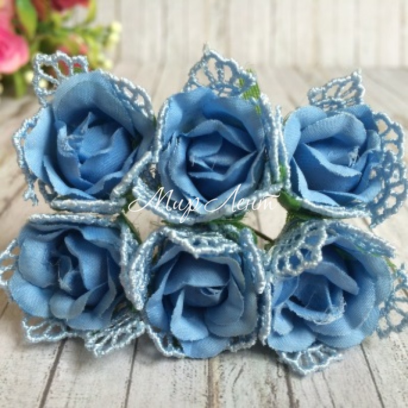 - Модель: Роза тканевая (с кружевом), 2 см, голубая