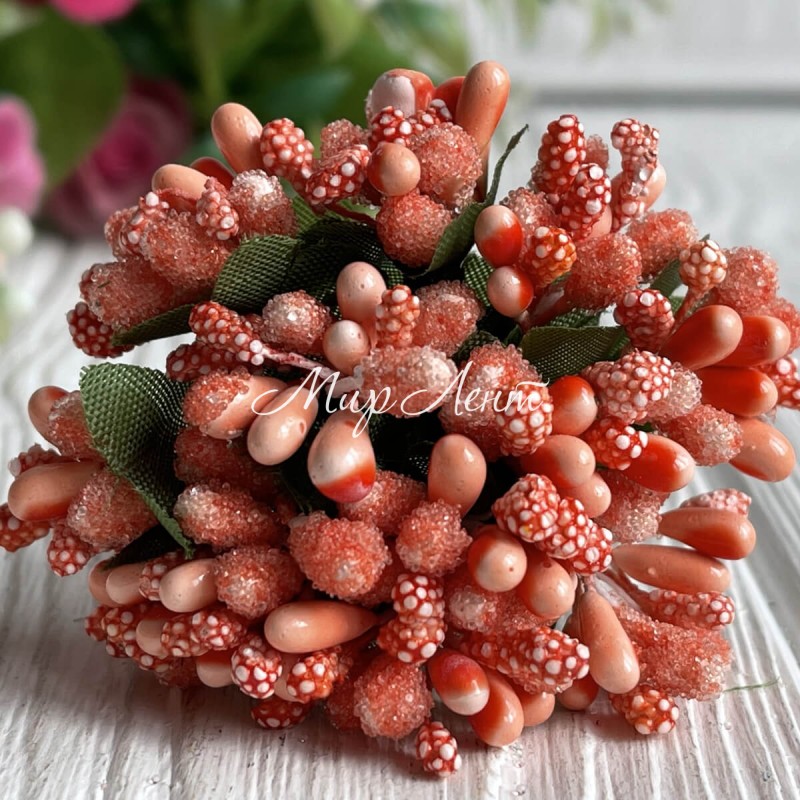 Гілочка з тичинками, оранжево-темно-персикова, пучок