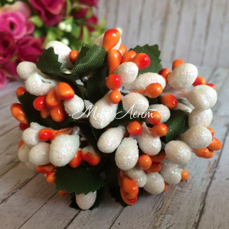Гілочка Wow, білий перламурт з помаранчевим