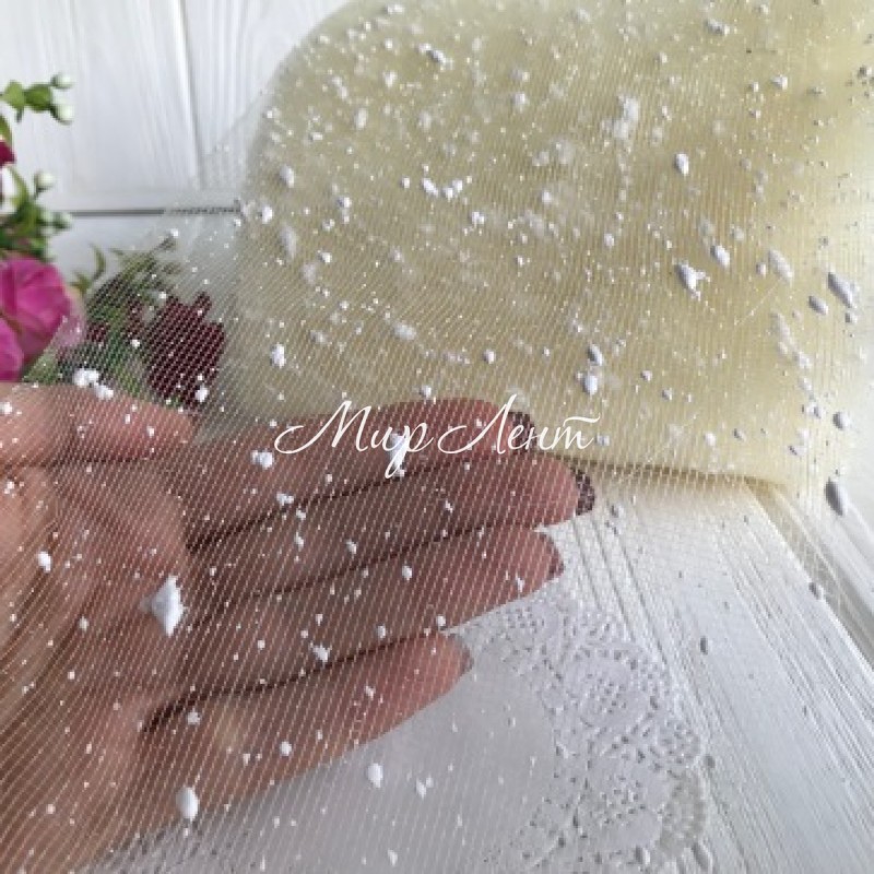 Вуаль-сітка, 15 см, молочна із вкрапленнями фома, на метраж