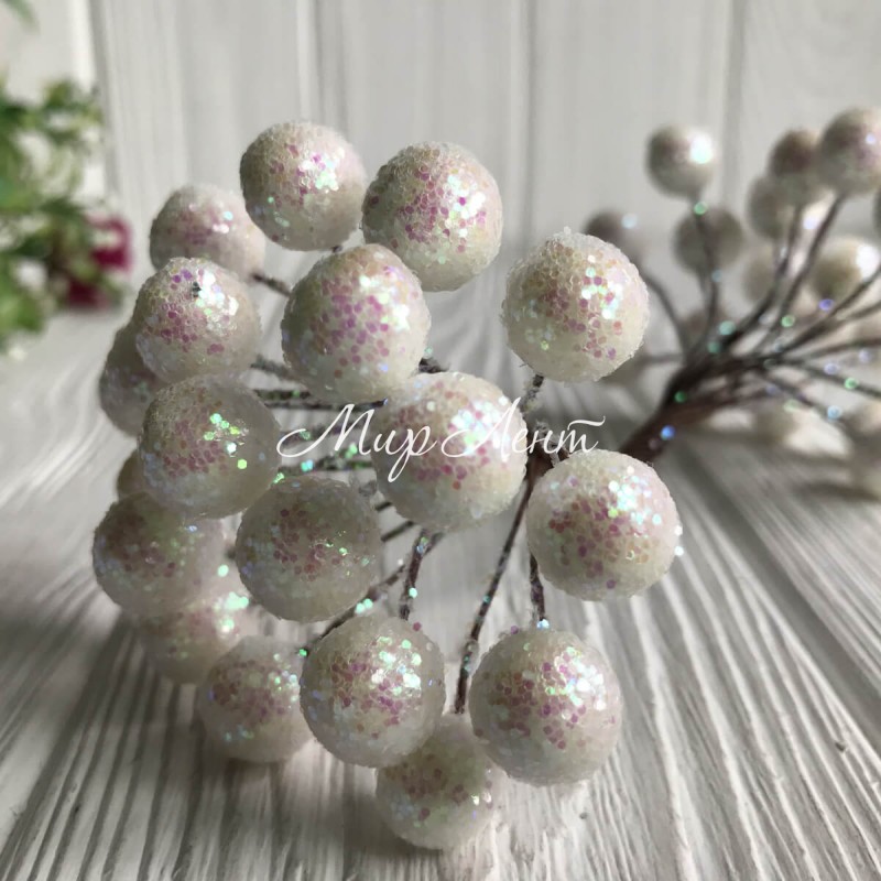 Ягідки з блискітками, 12 мм, червоний, пучок