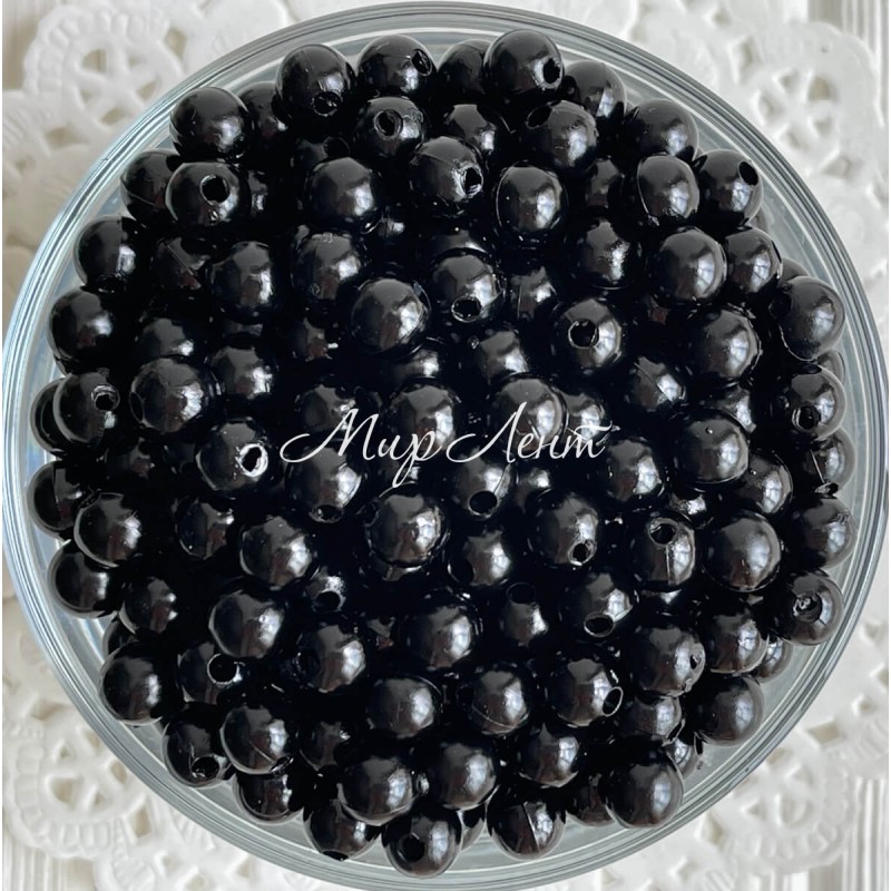Перли 8 мм, чорні, 1 шт. (пластик)