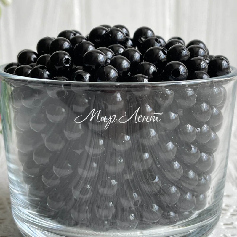 Перли 6 мм, чорні, 1 шт. (пластик)