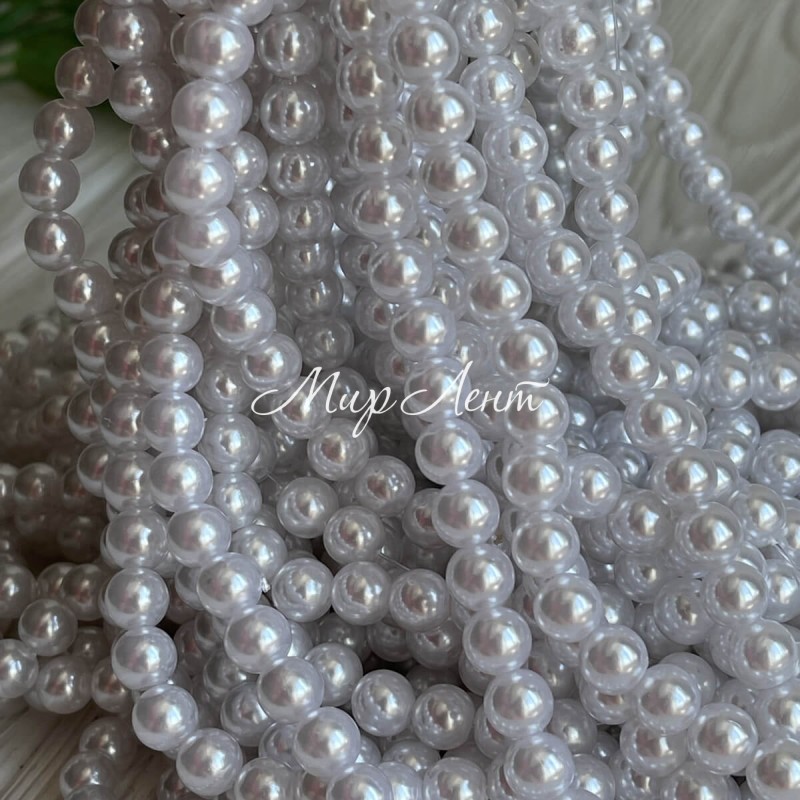 Перли на нитці Vip, 8 мм, білий, нитка близько 95 см
